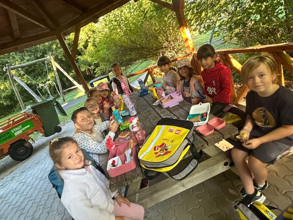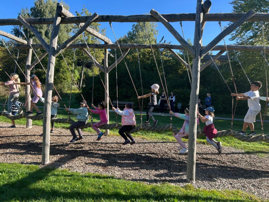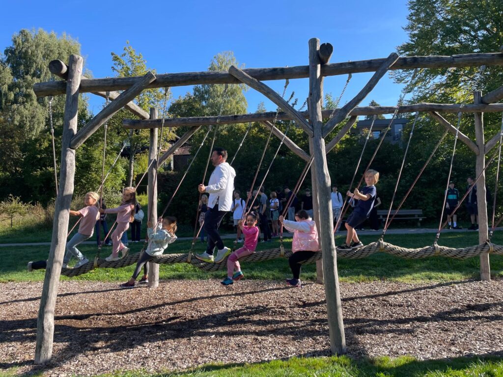 Am Spielplatz angekommen, erwartete die Kinder ein Paradies aus Schaukeln, Rutschen, Klettergerüsten und viel Platz zum Toben. Auch für eine gemeinsame Jause im Grünen war ausreichend Zeit – gestärkt und erfrischt ging es danach nochmal mit vollem Elan ans Spielen.