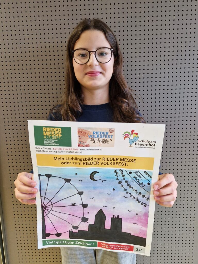 Die Besucher der Rieder Messe wählten letztendlich das Bild unserer Schülerin Yeva Posonska aus der jetzigen 4a als Siegerbild.