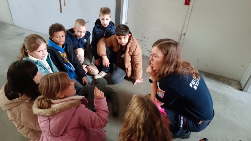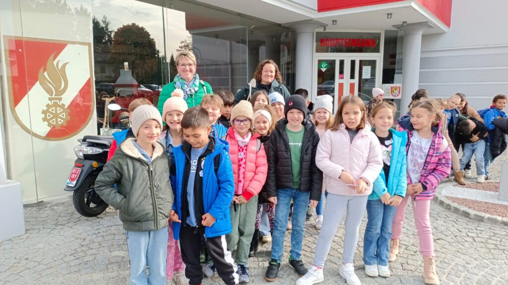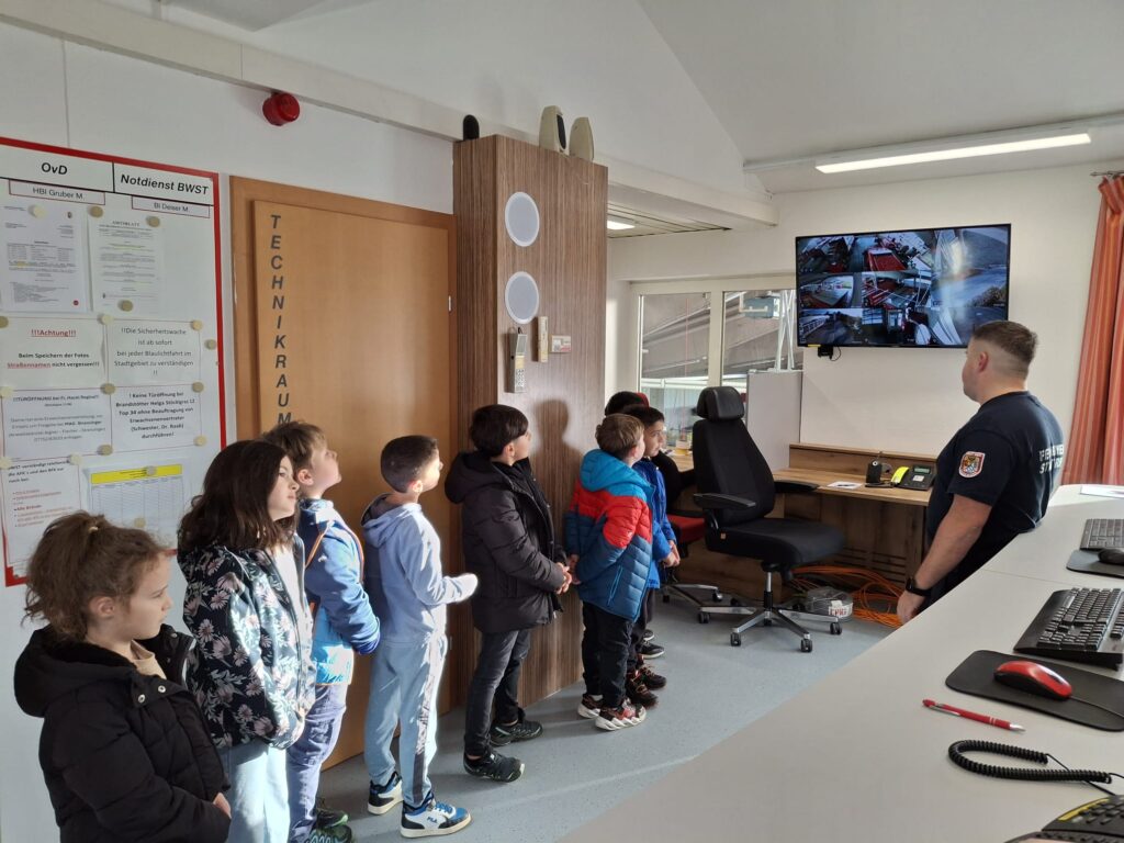 Am 20. Oktober durften die Schülerinnen und Schüler der 2a- und 2b-Klassen einen spannenden Blick hinter die Kulissen der Feuerwehr Ried werfen. Feuerwehrfrau Lisa Schmidtberger begrüßte die neugierige Gruppe herzlich und führte sie zunächst in die Einsatzzentrale. Dort erfuhren die Kinder, wie Notrufe entgegengenommen, Einsätze koordiniert und die Feuerwehrleute alarmiert werden – ein faszinierender Einblick in die Abläufe, die im Ernstfall Leben retten können.