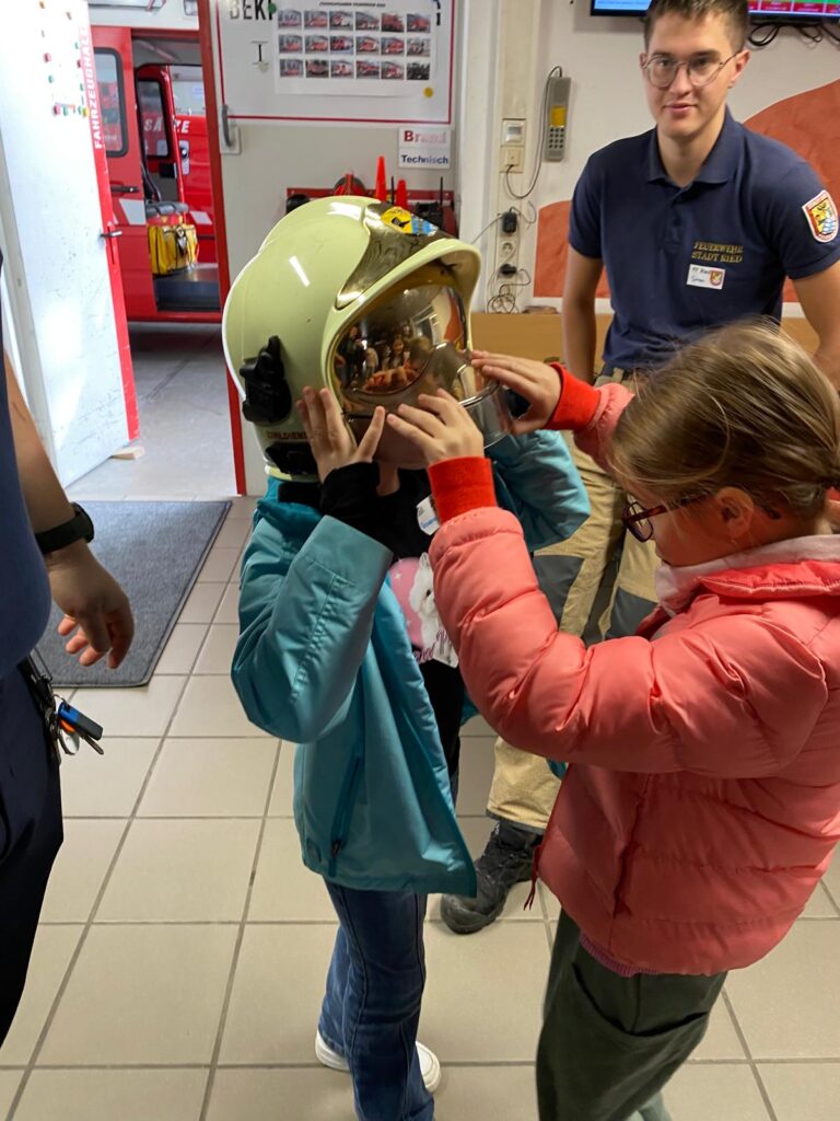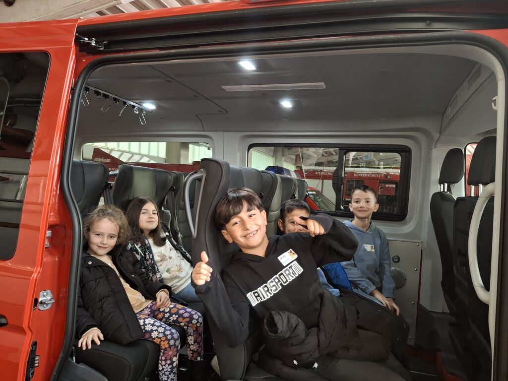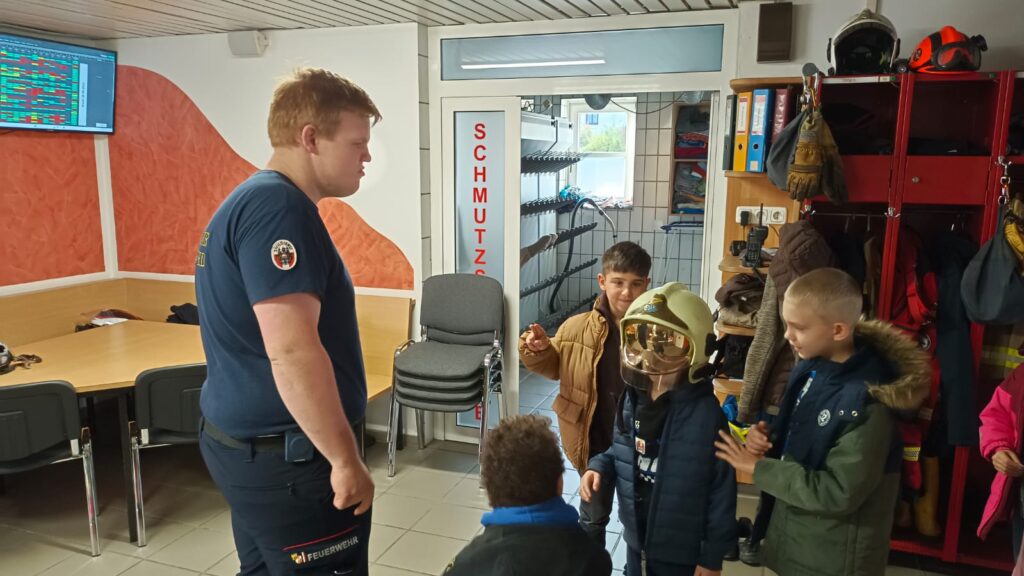 Besonders aufregend wurde es, als die Kinder die großen Einsatzfahrzeuge aus nächster Nähe bestaunen und sogar selbst erkunden durften. Mit leuchtenden Augen nahmen sie Platz im Feuerwehrauto und ließen sich die Ausrüstung erklären. Natürlich durften sie auch in die Schutzkleidung der Feuerwehrmänner und -frauen schlüpfen – ein echtes Highlight!