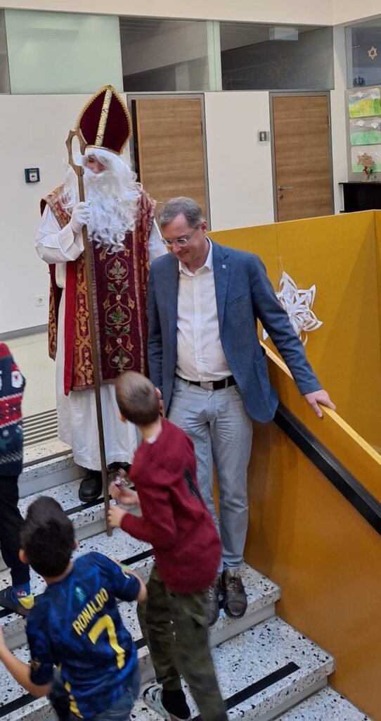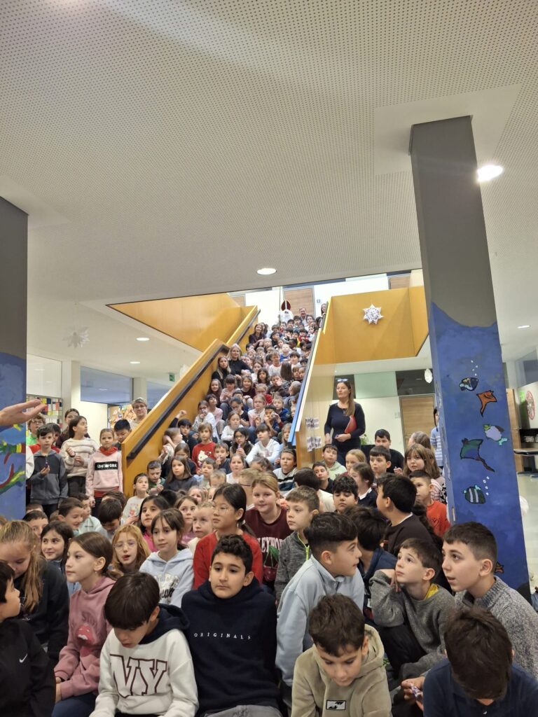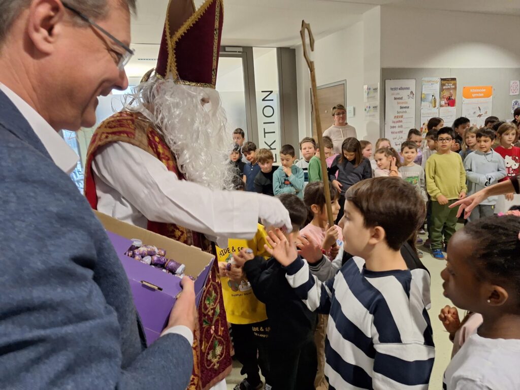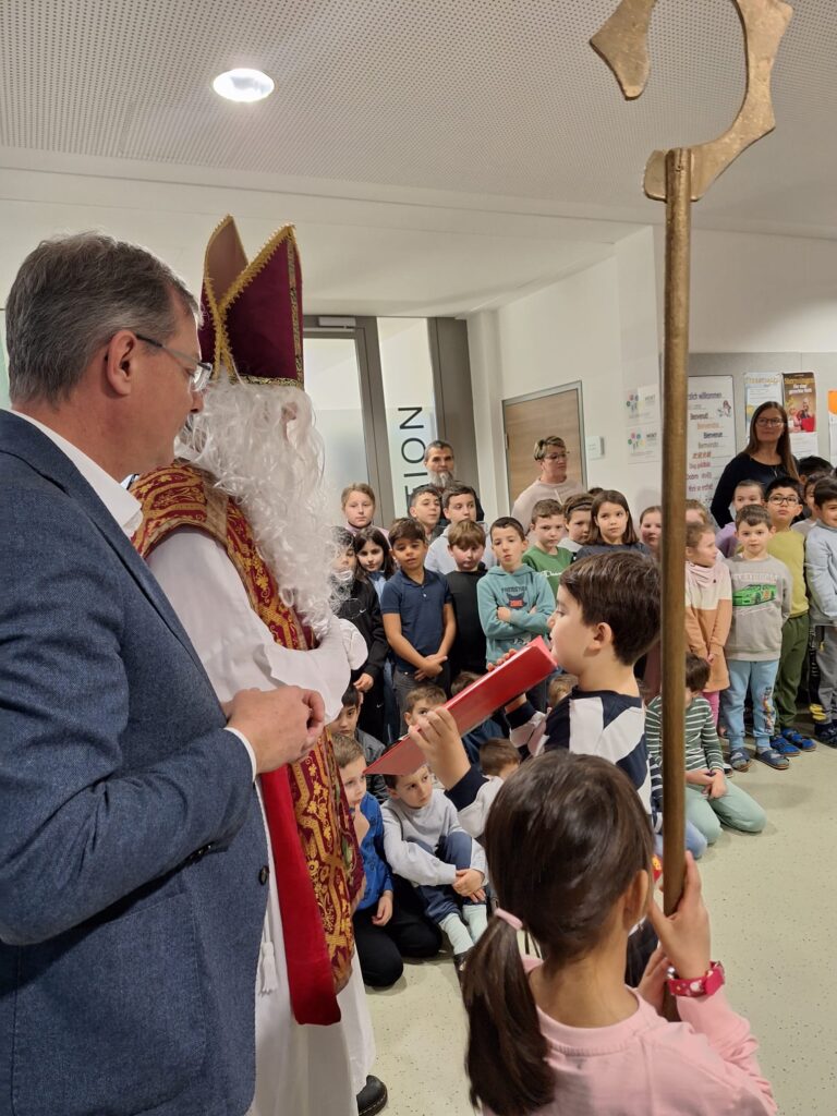 Mit fröhlichen Liedern und strahlenden Kinderaugen wurde am 5. Dezember der Nikolaus empfangen. Gemeinsam mit Bürgermeister Bernhard Zwielehner zog er durch die weihnachtlich geschmückte Schule und brachte eine besondere vorweihnachtliche Stimmung mit sich. Der Nikolaus lauschte den vorbereiteten musikalischen Beiträgen und lobte die vielen fleißigen Kinder für ihr gutes Verhalten im vergangenen Jahr.