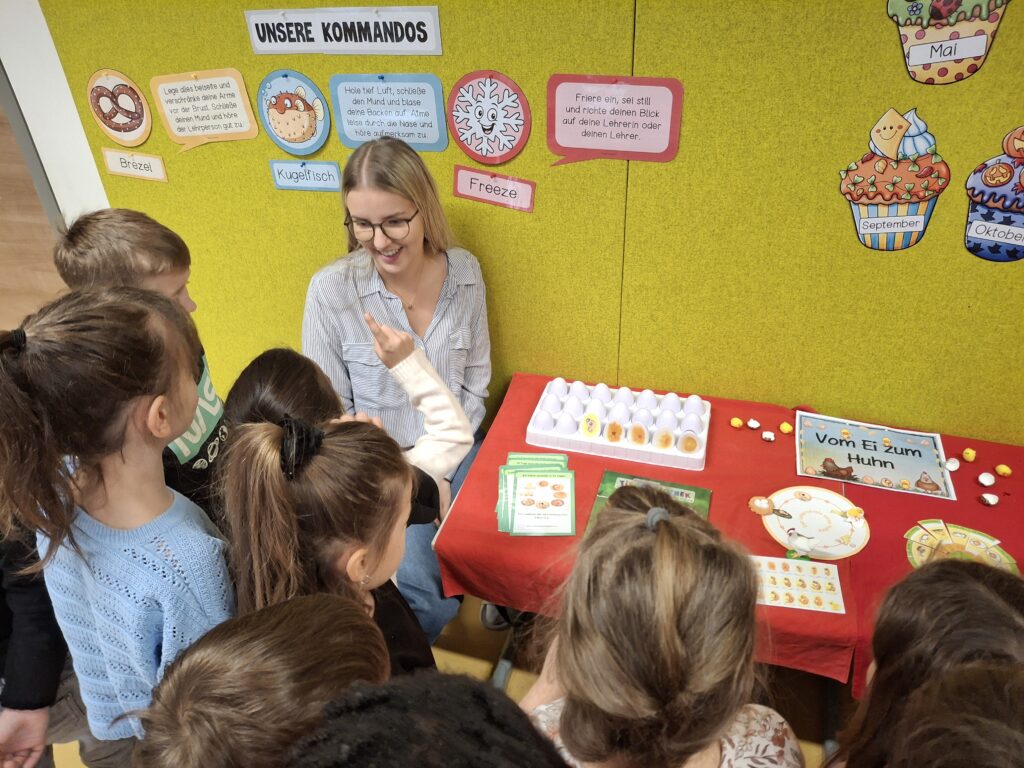 In den ersten Klassen ist es derzeit besonders spannend: Unsere Schülerinnen und Schüler dürfen hautnah miterleben, wie neues Leben entsteht. Im Rahmen eines besonderen Projekts brüten die Kinder Hühnereier in einem Brutkasten aus und beschäftigen sich mit der Entwicklung des Huhns.
