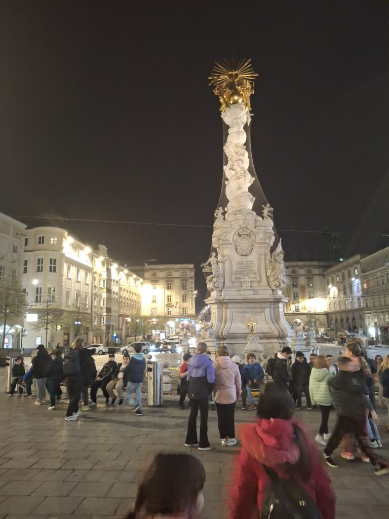 Am Abend wurde es dann kulturell: Im KuddelMuddel erwartete die Klassen das Theaterstück „Moby Dick“, das mitreißend inszeniert war und mit großem Applaus belohnt wurde. Ein stimmungsvoller Spaziergang vorbei an der Pestsäule mit Blick auf das farbenprächtig leuchtende Ars Electronica Center rundete den Tag perfekt ab. Müde, aber voller Eindrücke, fielen schließlich alle in ihre Betten.