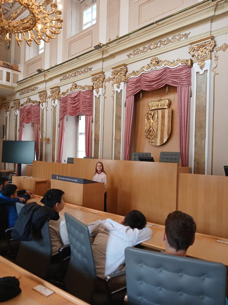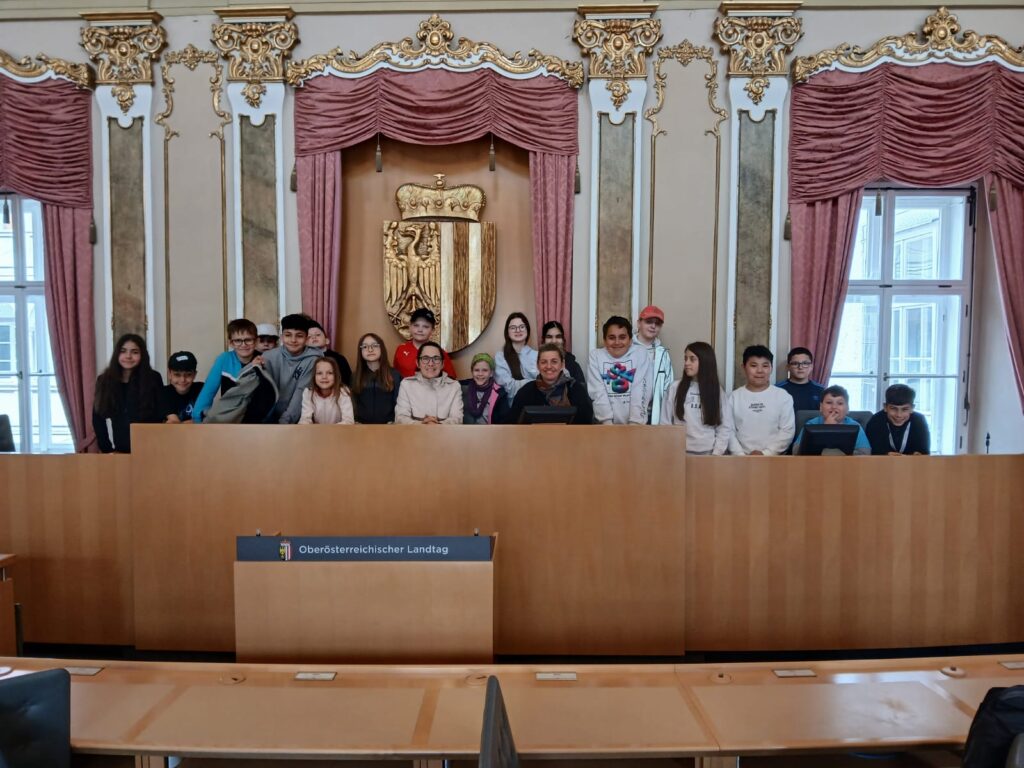 Ein weiterer Höhepunkt folgte im Landhaus, wo die Schülerinnen und Schüler einen Blick hinter die Kulissen der Politik werfen konnten. Der Sitzungssaal des Landtags und der eindrucksvolle Arkadenhof hinterließen bleibende Eindrücke.